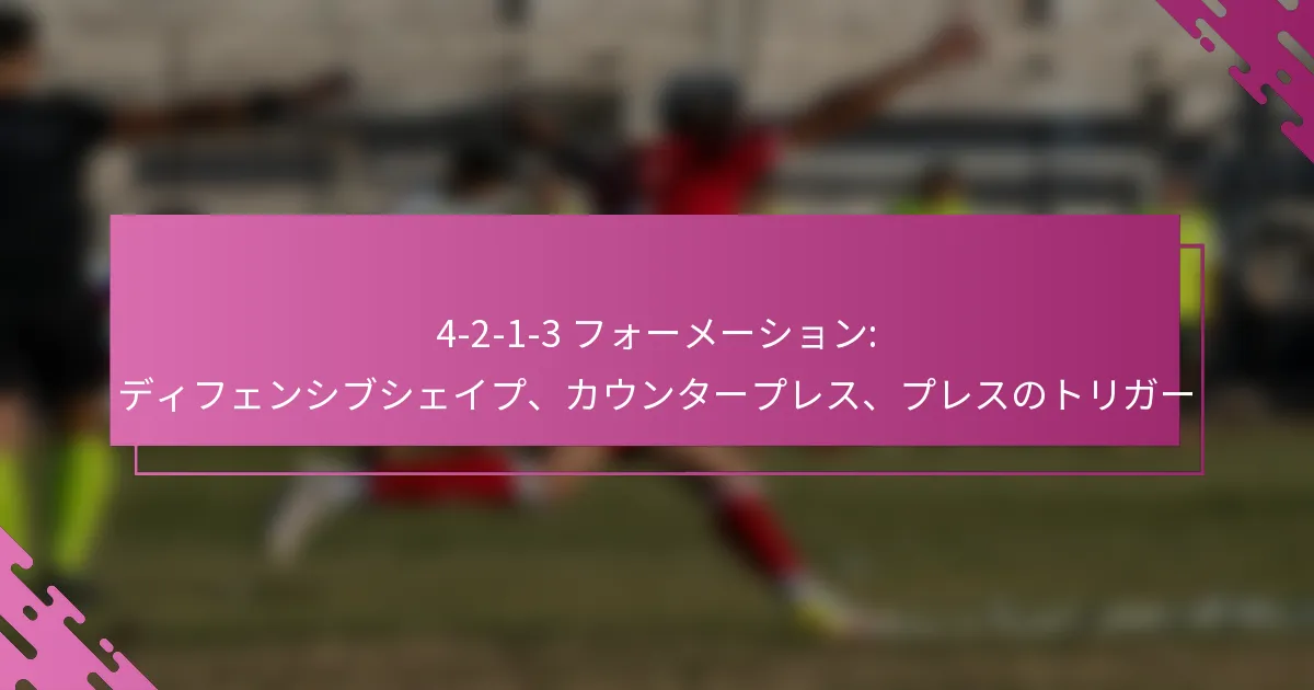 4-2-1-3 フォーメーション: ディフェンシブシェイプ、カウンタープレス、プレスのトリガー
