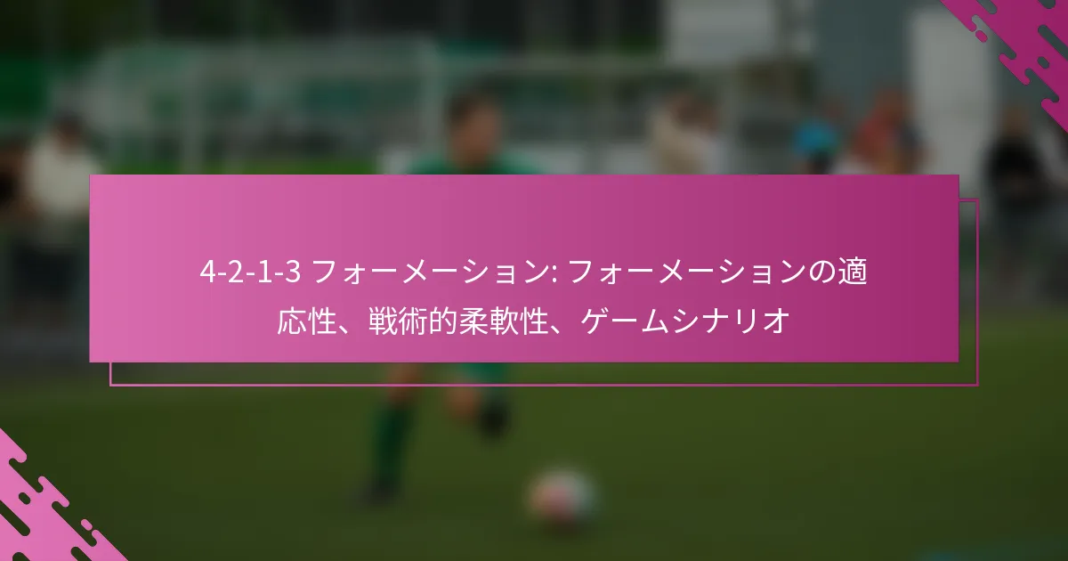 4-2-1-3 フォーメーション: フォーメーションの適応性、戦術的柔軟性、ゲームシナリオ