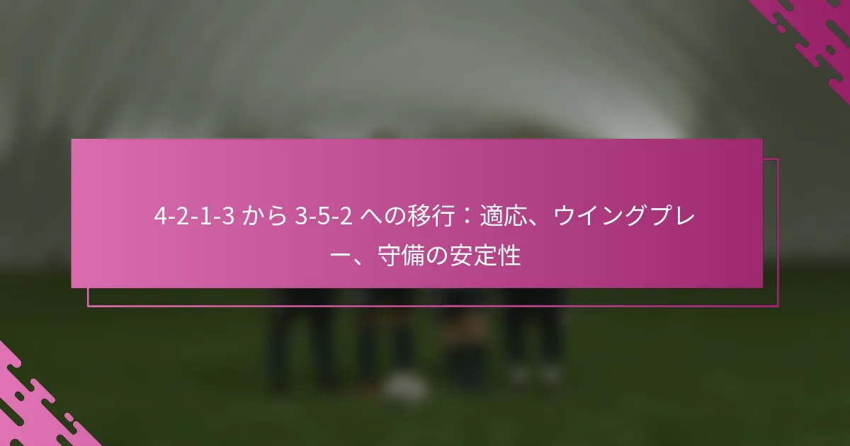 4-2-1-3フォーメーションから3-5-2セットアップへの移行は、守備の堅実さを優先しつつ、ウィングプレーを強化する戦略的なシフトを表しています。この適応により、チームは中盤のコントロールを維持し、ウィングバックを使用して守備構造を強化することができます。コミュニケーションと戦術的調整に焦点を当てることで、チームはこの移行を効果的にナビゲートし、さまざまな試合シナリオでパフォーマンスを最適化することができます。