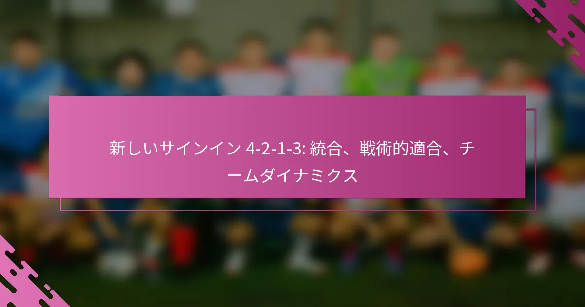 4-2-1-3フォーメーションにおける新加入選手は、チームの戦術的な風景を大きく変える可能性があります。この統合には、選手の役割、動きのパターン、全体的なチームダイナミクスの調整が必要で、ピッチ上での効果を最大化します。