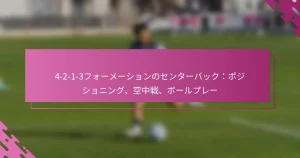 4-2-1-3フォーメーションは、サッカーにおける戦術的な配置であり、防御の安定性と攻撃の柔軟性のバランスを取るもので、4人のディフェンダー、2人のセンターミッドフィールダー、1人の攻撃的ミッドフィールダー、3人のフォワードで構成されています。このフォーメーションでは、選手がそれぞれの役割と責任を理解することが求められ、攻撃と防御の両方において効果的な移行と戦略的なポジショニングを可能にします。 サッカーにおける4-2-1-3フォーメーションとは? 4-2-1-3フォーメーションは、4人のディフェンダー、2人のセンターミッドフィールダー、1人の攻撃的ミッドフィールダー、3人のフォワードで構成される戦術的な配置です。このフォーメーションは、強力なミッドフィールダーの存在を強調しつつ、ダイナミックな攻撃オプションと堅固な防御カバーを可能にします。 4-2-1-3フォーメーションの定義と構造 4-2-1-3フォーメーションは、後方に配置された4人のディフェンダー、守備のサポートとリンクプレーを提供する2人のセンターミッドフィールダー、クリエイティブな中心として機能する1人の攻撃的ミッドフィールダー、そして相手の防御を引き伸ばす3人のフォワードで構成されています。この構造は、攻撃と防御の両方において柔軟性を持たせ、ボールを保持しつつ迅速にカウンターを仕掛けることができるため、チームにとって人気のある選択肢となっています。 ディフェンダーは通常、2人のセンターバックと2人のフルバックで構成され、ミッドフィールダーは試合のテンポをコントロールする役割を担います。攻撃的ミッドフィールダーは、ライン間でプレーし、フォワードにチャンスを作り出します。この配置は、選手間の流動的な動きとポジションの入れ替わりを促進します。 他のサッカーフォーメーションとの比較 他のフォーメーションと比較すると、4-2-1-3は防御と攻撃のバランスの取れたアプローチを提供します。追加のミッドフィールダーを持つ4-3-3フォーメーションに似ていますが、時には同じ攻撃の幅を欠くことがあります。一方、4-4-2フォーメーションはより防御の安定性を提供しますが、ボールを支配するチームに対してチャンスを作るのが難しい場合があります。 フォーメーション ディフェンダー ミッドフィールダー フォワード 主な強み 4-2-1-3 4 2 3 強力なミッドフィールダーのコントロール、ダイナミックな攻撃 4-3-3 4 […]