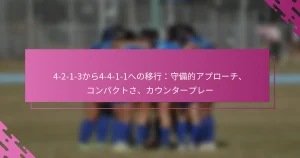 サッカーにおける4-2-1-3から4-4-1-1フォーメーションへの移行は、守備の組織とコンパクトさの重要性を強調しています。このシフトにより、チームは守備の堅実さを高めつつ、素早いカウンターアタックに備えることができます。堅固な構造を維持することに焦点を当てることで、選手は対戦相手の脅威に効果的に対応し、ブレイクのチャンスを活かすことができます。 4-2-1-3フォーメーションとその主要な特徴とは? 4-2-1-3フォーメーションは、サッカーにおける戦術的なセットアップで、4人のディフェンダー、2人のセンターミッドフィルダー、1人の攻撃的ミッドフィルダー、そして3人のフォワードで構成されています。このフォーメーションは、守備の安定性と攻撃の柔軟性の両方を強調し、チームがプレーのフェーズ間で効果的に移行できるようにします。 4-2-1-3における選手の役割とポジショニング 4-2-1-3フォーメーションでは、2人のセンターミッドフィルダーが守備と攻撃をつなぐ重要な役割を果たします。彼らは相手の攻撃を阻止し、攻撃的ミッドフィルダーやウィンガーにボールを配球する責任があります。攻撃的ミッドフィルダーは中央でプレーし、しばしばゴールチャンスを創出するプレーメーカーとして機能します。 3人のフォワードは、2人のウィンガーと1人のセンターフォワードで構成されています。ウィンガーは相手の守備を広げ、幅を提供し、センターフォワードはチャンスを決めることに集中します。フルバックは守備の役割とオーバーラップする走りをサポートし、攻撃を助け、チームの攻撃能力を高めます。 4-2-1-3フォーメーションの強み 2人のホールディングミッドフィルダーによる強力な守備基盤を提供します。 守備と攻撃の間で迅速に移行できる戦術的柔軟性を提供します。 ウィンガーとフルバックを通じて攻撃プレーに幅と深さを促進します。 プレスとカウンタープレス戦略を効果的に実施します。 4-2-1-3フォーメーションのコンパクトさは、チームが守備の堅実さを維持しつつ、迅速なカウンターアタックを展開できるようにします。攻撃的ミッドフィルダーの存在は創造的なプレーを可能にし、相手がチームの動きを予測するのを難しくします。 4-2-1-3フォーメーションの弱点 ミッドフィルダーがポジションを外れるとカウンターアタックに対して脆弱になる可能性があります。 ウィンガーとフルバックには高い作業率が求められ、疲労を引き起こす可能性があります。 ミッドフィールドに多くの選手を配置するチームに対して苦戦することがあります。 4-2-1-3の主な弱点の一つは、2人のセンターミッドフィルダーが広いエリアをカバーすることに依存している点です。彼らが数で劣ると、相手が利用できるギャップが生じる可能性があります。さらに、ウィンガーが効果的に戻らない場合、チームは守備の脆弱性に直面することがあります。 4-2-1-3を使用する典型的なゲームシナリオ 4-2-1-3フォーメーションは、チームがボールを支配し、試合のペースを支配することを期待する試合で特に効果的です。攻撃プレーを優先しつつ、堅固な守備構造を維持するチームに適しています。このフォーメーションは、単独のストライカーでプレーするチームに対しても有利であり、ミッドフィールドでのカバーを改善します。 対照的に、チームはより支配的な相手に対してカウンターアタックを行う必要がある場合に4-2-1-3を選択することがあります。このフォーメーションは、守備から攻撃への迅速な移行が可能であり、攻撃的な相手が残したスペースを利用するのに理想的です。コーチはしばしば、相手の強みと弱みに基づいて選手の役割を調整し、このフォーメーションに内在する戦術的柔軟性を示します。 […]