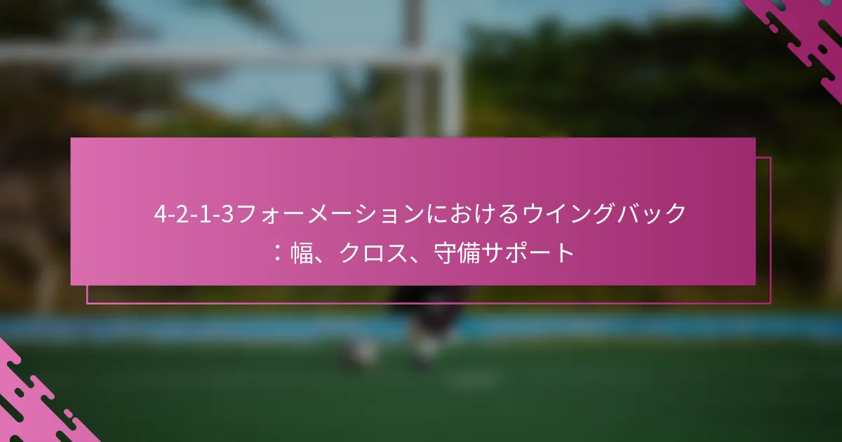 4-2-1-3フォーメーションにおいて、ウイングバックは幅を維持し、攻撃と守備の戦略を強化するために重要です。彼らのフランクでのポジショニングは、相手の守備を広げるだけでなく、守備のフェーズにおいて重要なサポートを提供することも可能にします。クロス技術の習得により、ウイングバックは得点機会を創出することができ、チーム全体のパフォーマンスにおいて重要な選手となります。
